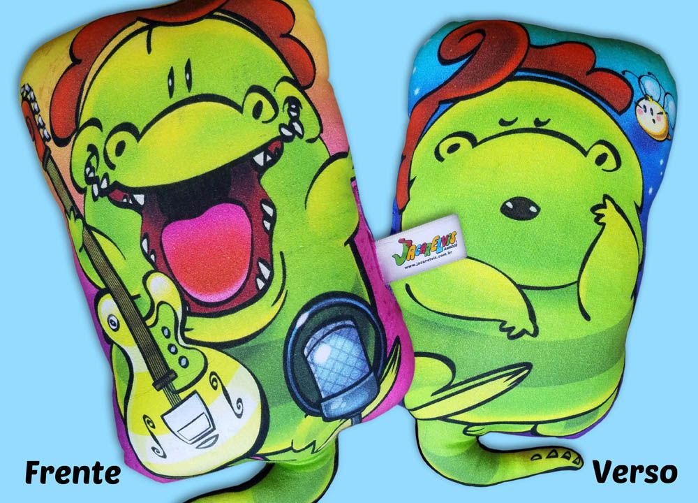 - Impressão diretamente no tecido nos 2 lados: na parte da frente, o Jacarelvis acordado e no verso, o Jacarelvis dormindo.